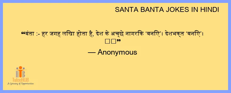 बंता :- हर जगह लिखा होता है, देश के अच्छे नागरिक ‘बनिए’। देशभक्त ‘बनिए’। 🤣🤣