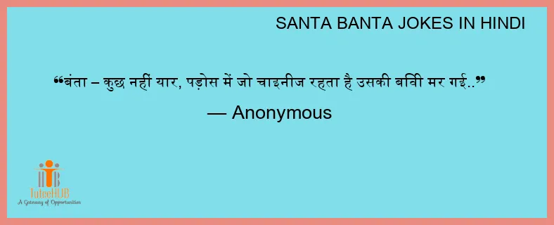 बंता – कुछ नहीं यार, पड़ोस में जो चाइनीज रहता है उसकी बिवी मर गई..