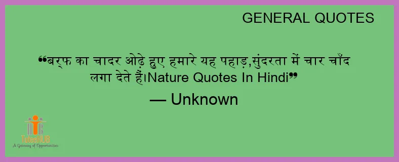 बर्फ का चादर ओढ़े हुए हमारे यह पहाड़,सुंदरता में चार चाँद लगा देते हैं।Nature Quotes In Hindi