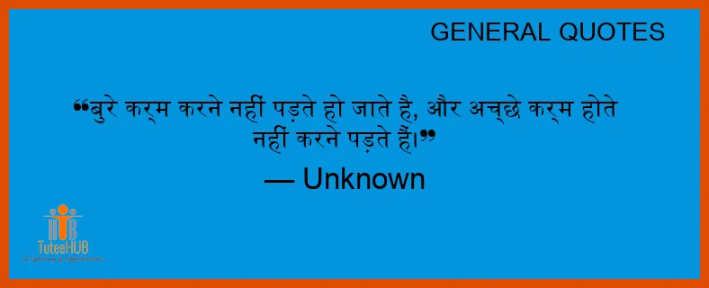 बुरे कर्म करने नहीं पड़ते हो जाते है, और अच्‍छे कर्म होते नहीं करने पड़ते हैं।