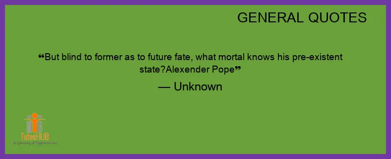 But blind to former as to FUTURE fate, what MORTAL KNOWS his pre-existent STATE?Alexender POPE