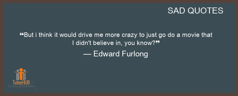 But i THINK it WOULD drive me more crazy to just GO do a movie that I didn't believe in, you know?