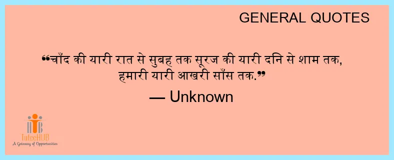 चाँद की यारी रात से सुबह तक सूरज की यारी दिन से शाम तक, हमारी यारी आखरी साँस तक.