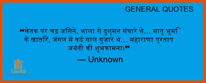 चेतक पर चढ़ जिसने, भाला से दुश्मन संघारे थे… मातृ भूमि के खातिर, जंगल में कई साल गुजारे थे… महाराणा प्रताप जयंती की शुभकामना।