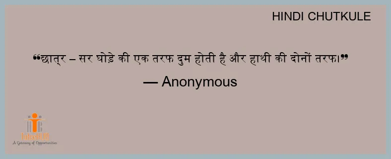छात्र – सर घोड़े की एक तरफ दुम होती है और हाथी की दोनों तरफ।