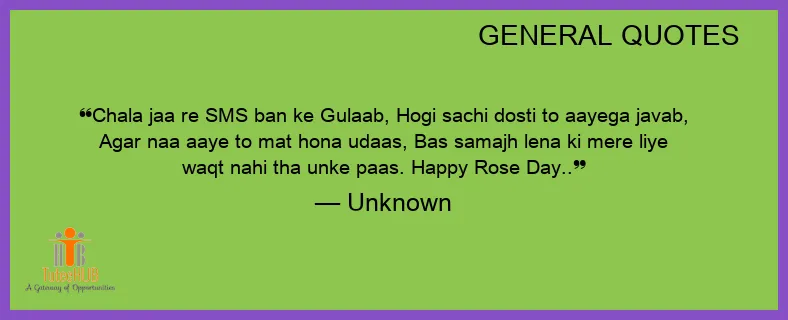 Chala jaa re SMS ban ke Gulaab, Hogi sachi DOSTI to aayega javab, Agar naa aaye to MAT hona udaas, BAS samajh lena ki mere liye waqt NAHI tha unke paas. Happy Rose Day..