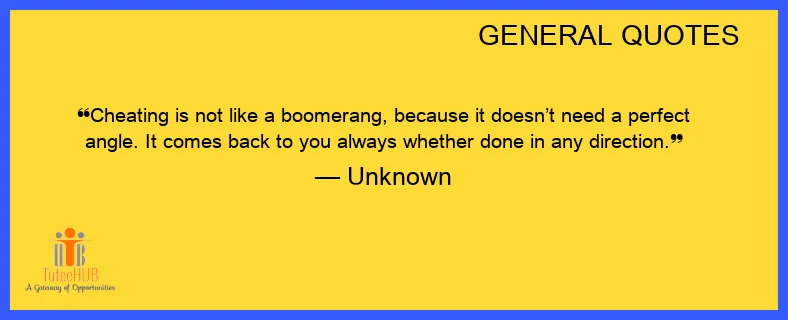 Cheating is not like a BOOMERANG, because it doesn’t need a perfect ANGLE. It comes BACK to you always whether DONE in any direction.
