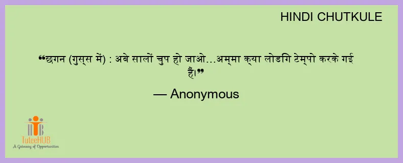 छगन (गुस्स में) : अबे सालों चुप हो जाओ…अम्मा क्या लोडिंग टेम्पो करके गई हैं।