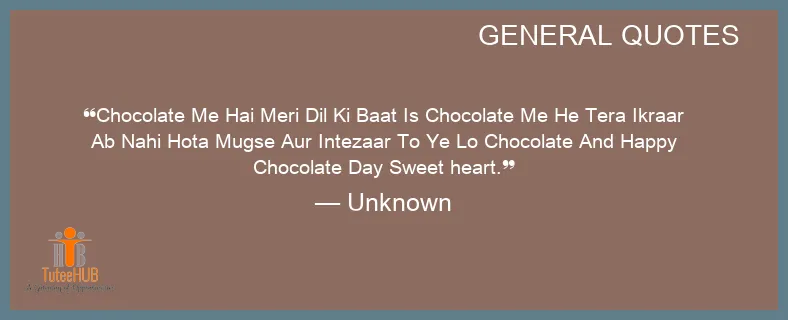 Chocolate Me Hai MERI Dil KI Baat Is Chocolate Me He TERA Ikraar Ab NAHI Hota Mugse Aur Intezaar To Ye Lo Chocolate And Happy Chocolate Day Sweet heart.