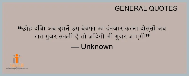 छोड़ दिया अब हमनें उस बेवफा का इंतजार करना दोस्तों जब रात गुजर सकती है तो ज़िंदगी भी गुजर जाएगी