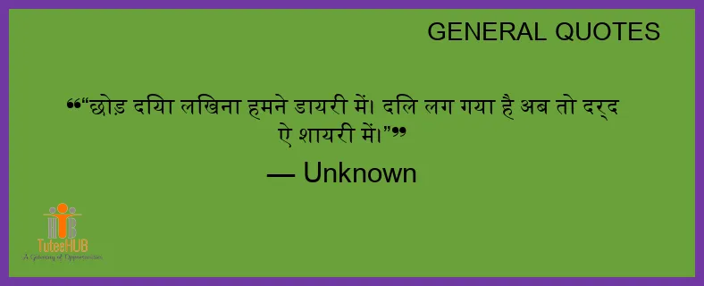 “छोड़ दिया लिखना हमने डायरी में। दिल लग गया है अब तो दर्द ऐ शायरी में।”
