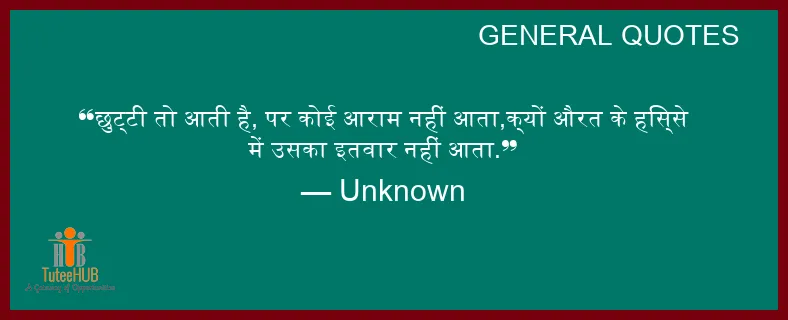 छुट्टी तो आती है, पर कोई आराम नहीं आता,क्यों औरत के हिस्से में उसका इतवार नहीं आता.