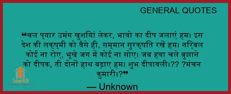 चल प्यार उमंग खुशियां लेकर, भावो का दीप जलाएं हम। इस देश की लक्ष्मी को वैसे ही, सम्मान सुरक्षित रखें हम। निर्बल कोई ना रोए, भूखे जग में कोई ना सोए। जब हवा चले बुझाने को दीपक, ती दोनों हाथ बढ़ाए हम। शुभ दीपावली।?? ?मंचन कुमारी।?
