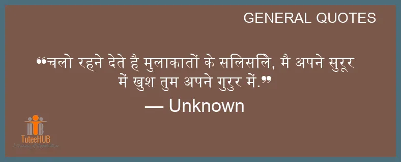 चलो रहने देते है मुलाकातों के सिलसिले, मै अपने सुरूर में खुश तुम अपने गुरुर में.