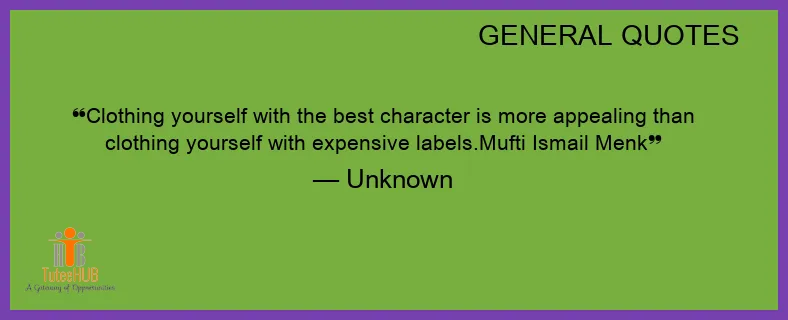CLOTHING yourself with the BEST CHARACTER is more appealing than clothing yourself with EXPENSIVE labels.Mufti Ismail Menk
