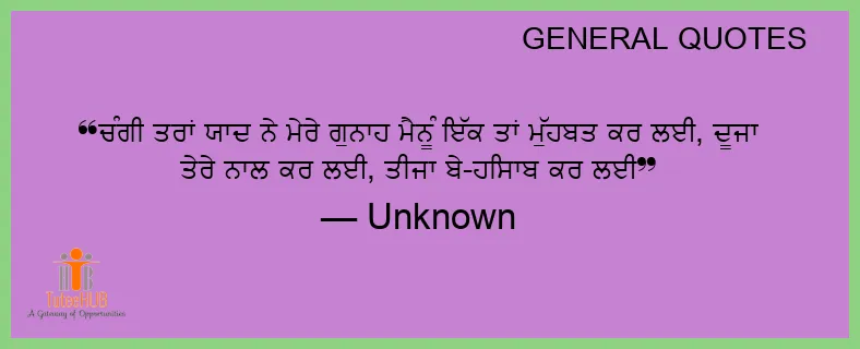 ਚੰਗੀ ਤਰਾਂ ਯਾਦ ਨੇ ਮੇਰੇ ਗੁਨਾਹ ਮੈਨੂੰ ਇੱਕ ਤਾਂ ਮੁੱਹਬਤ ਕਰ ਲਈ, ਦੂਜਾ ਤੇਰੇ ਨਾਲ ਕਰ ਲਈ, ਤੀਜਾ ਬੇ-ਹਿਸਾਬ ਕਰ ਲਈ