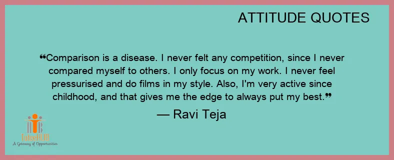 COMPARISON is a DISEASE. I never felt any competition, SINCE I never compared myself to others. I only focus on my work. I never feel pressurised and do films in my style. Also, I'm very active since childhood, and that gives me the EDGE to always put my best.