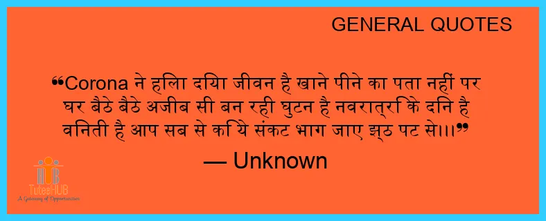 Corona ने हिला दिया जीवन है खाने पीने का पता नहीं पर घर बैठे बैठे अजीब सी बन रही घुटन है नवरात्रि के दिन है विनती है आप सब से कि ये संकट भाग जाए झ्ठ पट से।।।