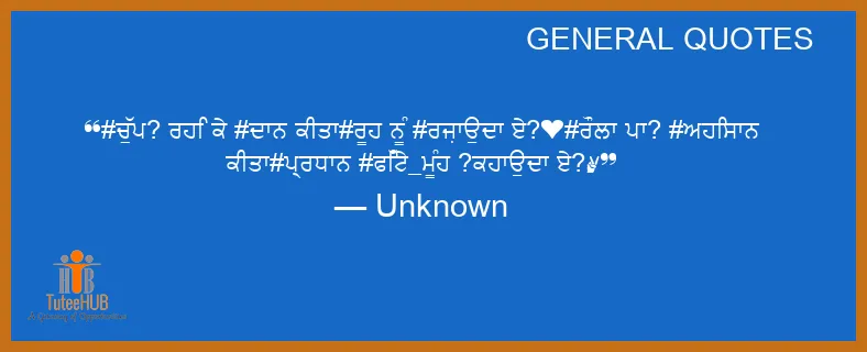 #ਚੁੱਪ? ਰਹਿ ਕੇ #ਦਾਨ ਕੀਤਾ#ਰੂਹ ਨੂੰ #ਰਜ਼ਾਉਂਦਾ ਏ?❤#ਰੌਲਾ ਪਾ? #ਅਹਿਸਾਨ ਕੀਤਾ#ਪ੍ਰਧਾਨ #ਫਿੱਟੇ_ਮੂੰਹ ?ਕਹਾਉਂਦਾ ਏ?✌