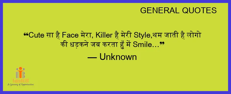 Cute सा है FACE मेरा, Killer है मेरी Style,थम जाती है लोगो की धड़कने जब करता हुँ में Smile…