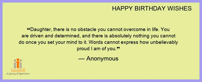Daughter, there is no obstacle you cannot overcome in life. You are driven and determined, and there is absolutely nothing you cannot do once you set your mind to it. Words cannot express how unbelievably proud I am of you.