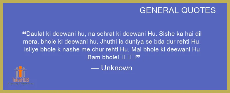Daulat KI deewani hu, NA sohrat ki deewani Hu. Sishe ka hai dil mera, bhole ki deewani hu. JHUTHI is duniya se bda DUR rehti Hu, isliye bhole k nashe me chur rehti Hu. Mai bhole ki deewani Hu . Bam bhole✨✨✨