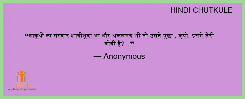 डाकुओं का सरदार शादीशुदा था और अकलमंद भी तो उसने पूछा : क्यों, इसमे तेरी बीवी है? .
