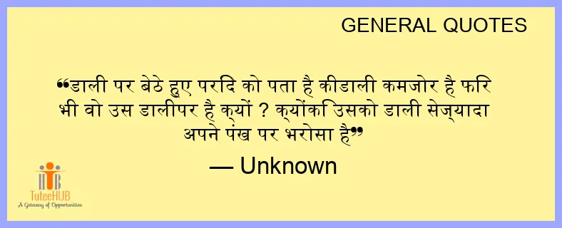 डाली पर बेठे हुए परिंदे को पता है कीडाली कमजोर है फिर भी वो उस डालीपर है क्यों ? क्योंकि उसको डाली सेज्यादा अपने पंख पर भरोसा है