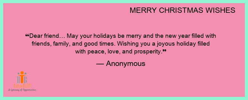 Dear friend… May your holidays be merry and the new year filled with friends, family, and good times. Wishing you a joyous holiday filled with peace, love, and prosperity.