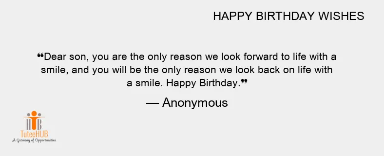 Dear son, you are the only reason we look forward to life with a smile, and you will be the only reason we look back on life with a smile. Happy Birthday.