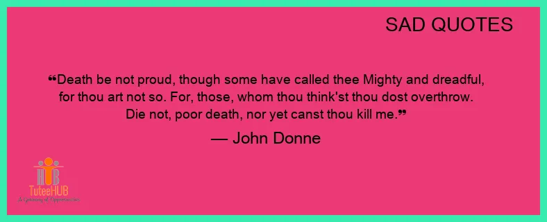 Death be not proud, though some have called thee Mighty and DREADFUL, for THOU art not so. For, those, whom thou think'st thou DOST overthrow. DIE not, POOR death, nor yet canst thou kill me.