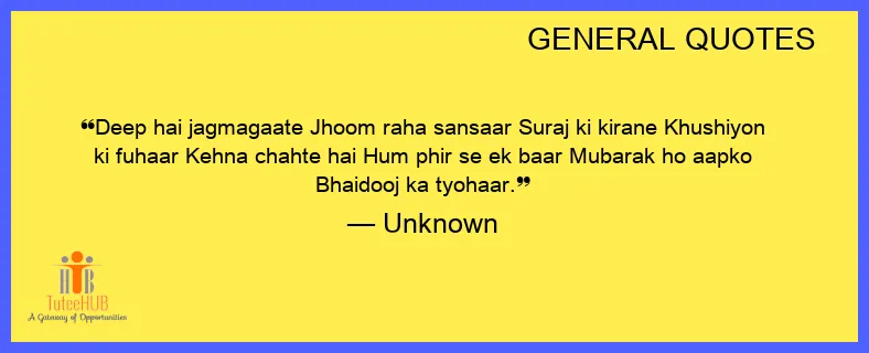 Deep hai jagmagaate Jhoom RAHA sansaar Suraj ki kirane Khushiyon ki fuhaar Kehna chahte hai Hum phir SE ek baar Mubarak HO aapko BHAIDOOJ ka tyohaar.