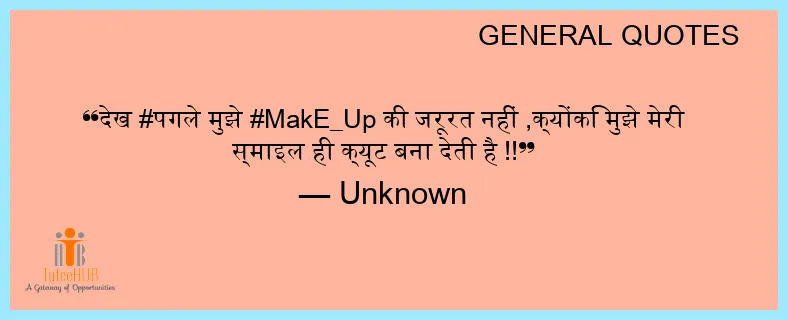 देख #पगले मुझे #MakE_Up की जरूरत नहीं ,क्योंकि मुझे मेरी स्माइल ही क्यूट बना देती है !!