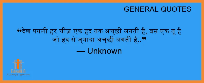 देख पगली हर चीज़ एक हद तक अच्छी लगती है, बस एक तू है जो हद से ज्यादा अच्छी लगती है..