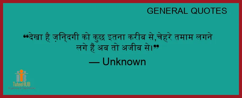 देखा है ज़िन्दगी को कुछ इतना करीब से,चेहरे तमाम लगने लगे हैं अब तो अजीब से।
