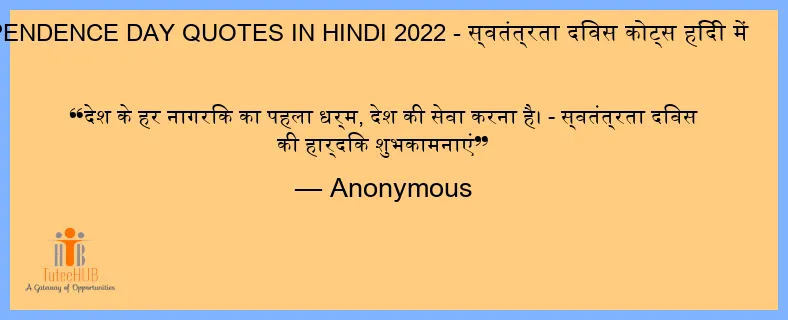 देश के हर नागरिक का पहला धर्म, देश की सेवा करना है। - स्वतंत्रता दिवस की हार्दिक शुभकामनाएं