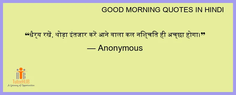 धैर्य रखें, थोड़ा इंतजार करें आने वाला कल निश्चित ही अच्छा होगा।