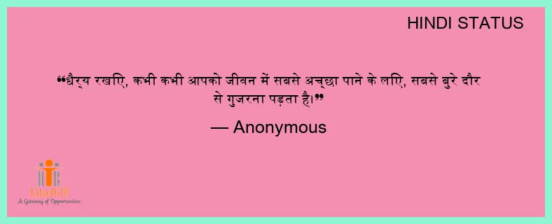 धैर्य रखिए, कभी कभी आपको जीवन में सबसे अच्छा पाने के लिए, सबसे बुरे दौर से गुजरना पड़ता है।