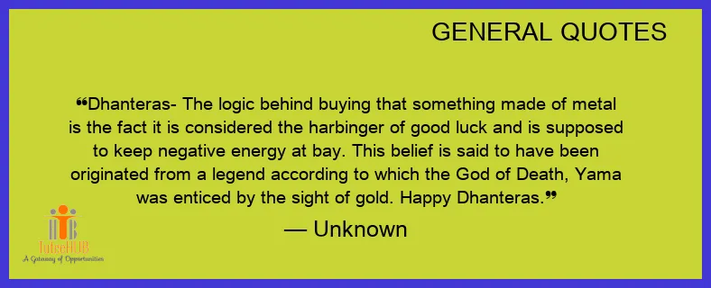 Dhanteras- The logic behind buying that something made of metal is the fact it is considered the harbinger of GOOD luck and is SUPPOSED to keep NEGATIVE energy at bay. This belief is said to have been originated from a legend according to which the God of Death, Yama was enticed by the SIGHT of gold. Happy Dhanteras.