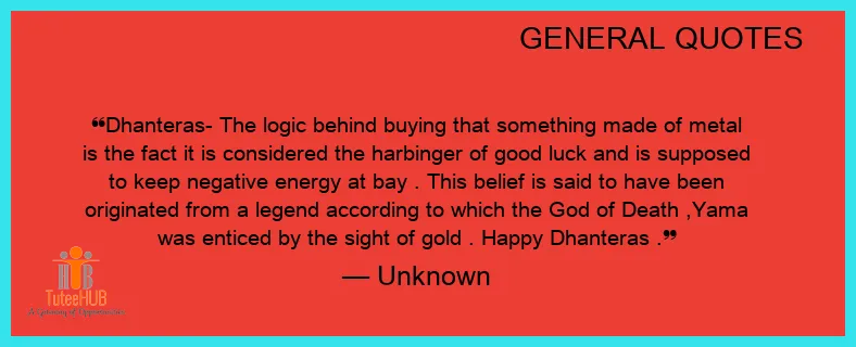 Dhanteras- The logic behind buying that something made of metal is the fact it is considered the HARBINGER of good luck and is supposed to KEEP NEGATIVE energy at BAY . This belief is said to have been originated from a legend ACCORDING to which the God of Death ,Yama was enticed by the sight of gold . Happy Dhanteras .