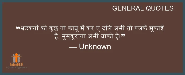 धडकनों को कुछ तो काबू में कर ए दिल अभी तो पलकें झुकाई है, मुस्कुराना अभी बाकी है।