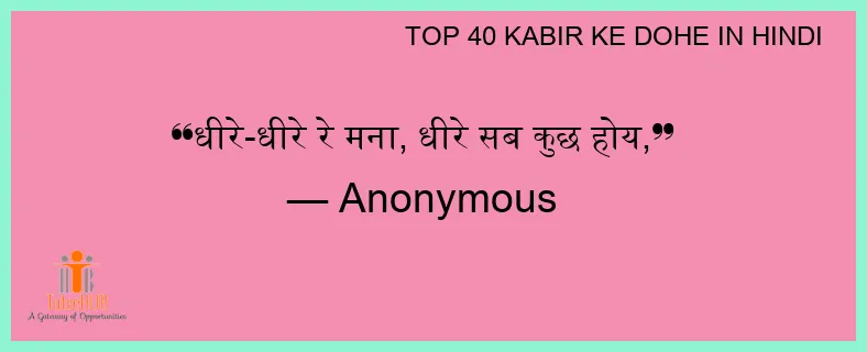 धीरे-धीरे रे मना, धीरे सब कुछ होय,