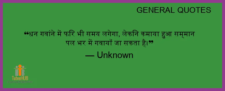 धन गवांने में फिर भी समय लगेगा, लेकिन कमाया हुआ सम्मान पल भर में गवायाँ जा सकता है।