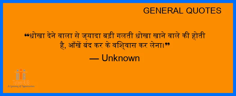 धोखा देने वाला से ज्यादा बड़ी गलती धोखा खाने वाले की होती है, आँखें बंद कर के विश्वास कर लेना।