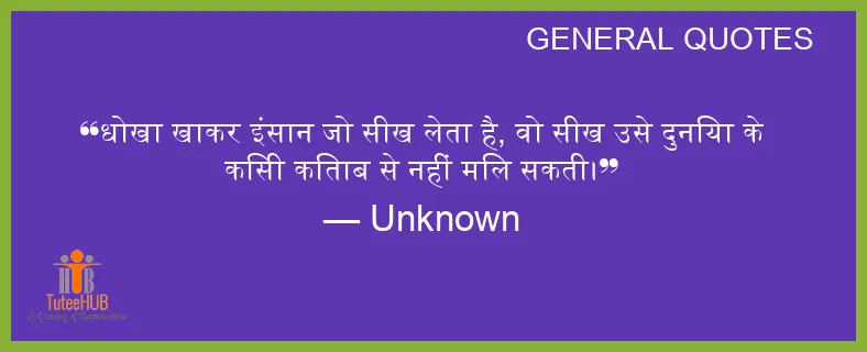 धोखा खाकर इंसान जो सीख लेता है, वो सीख उसे दुनिया के किसी किताब से नहीं मिल सकती।