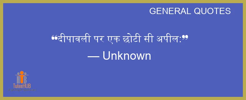 दीपावली पर एक छोटी सी अपील: