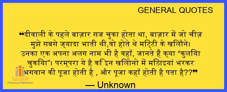 दीवाली के पहले बाज़ार सज चुका होता था, बाज़ार में जो चीज़ मुझे सबसे ज्यादा भाती थी,वो होते थे मिट्टी के खिलौने। उनका एक अपना अलग नाम भी है वहाँ, जानते हैं क्या “कुलिया चुकिया”। परम्परा ये है कि इन खिलोनो में मिठाइयां भरकर भगवान की पूजा होती है , और पूजा कहाँ होती है पता है??