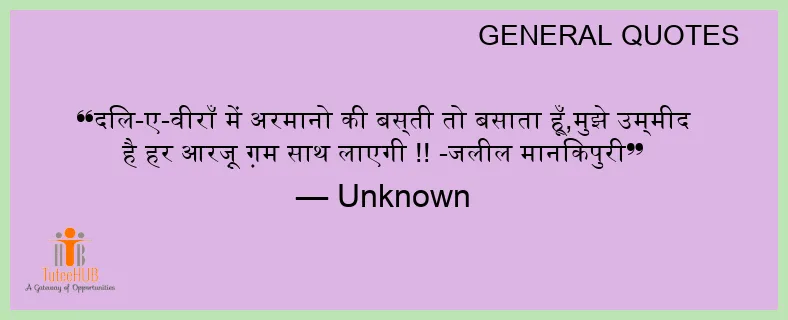 दिल-ए-वीराँ में अरमानो की बस्ती तो बसाता हूँ,मुझे उम्मीद है हर आरज़ू ग़म साथ लाएगी !! -जलील मानिकपुरी