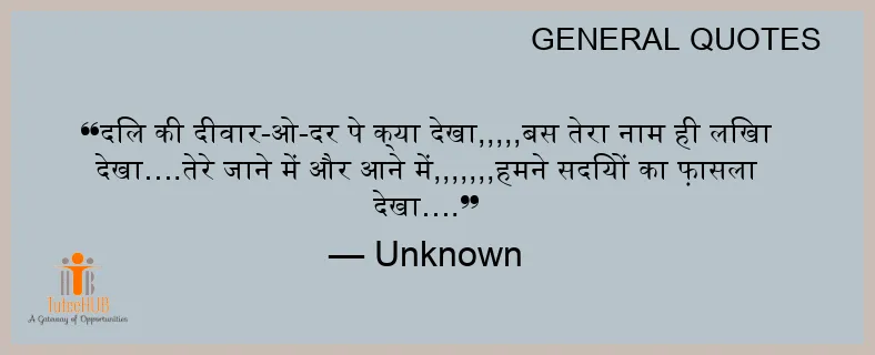 दिल की दीवार-ओ-दर पे क्या देखा,,,,,बस तेरा नाम ही लिखा देखा….तेरे जाने में और आने में,,,,,,,हमने सदियों का फ़ासला देखा….