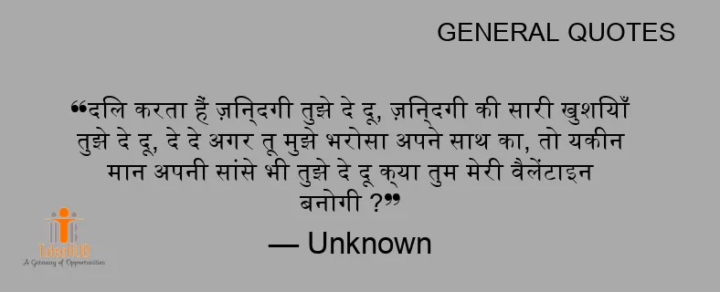 दिल करता हैं ज़िन्दगी तुझे दे दू, ज़िन्दगी की सारी खुशियाँ तुझे दे दू, दे दे अगर तू मुझे भरोसा अपने साथ का, तो यकीन मान अपनी सांसे भी तुझे दे दू क्या तुम मेरी वैलेंटाइन बनोगी ?